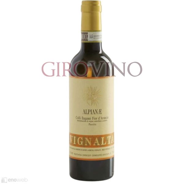 Vignalta Fior d’Arancio Passito Alpianae 2020: elegante vino da dessert dai Colli Euganei, ricco di aromi di albicocca, miele e spezie, prodotto con Moscato Giallo appassito.