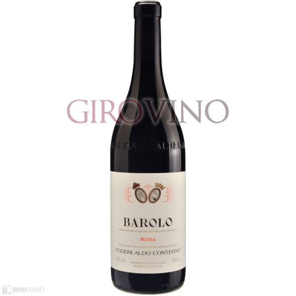 Il Barolo Bussia di Poderi Aldo Conterno è un vino rosso dal colore rosso rubino con riflessi granati. Questo Cru di Barolo, il Bussia, macera sulle proprie bucce in vasche di acciaio inox per circa un mese, prima di essere travasato più volte per poi affinare in botti di rovere per almeno 2 anni.
