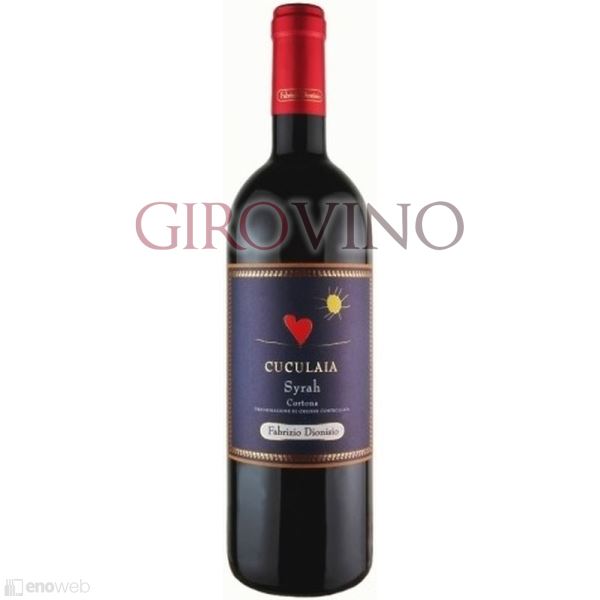 Syrah Cortona Cuculaia 2019 di Fabrizio Dionisio: vino rosso toscano di carattere, coltivato tradizionalmente e affinato in legno, con note fruttate e speziate.